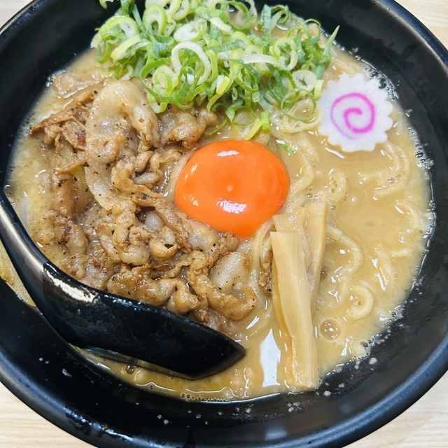 業界初となる、牛・豚・鶏をベースとした三獣スープと国産小麦から造ったこだわりの太麺、濃厚卵黄、名産パルマハムの原料となっているホエー豚を使用した究極の一杯「肉玉そば」は他の追随を許しません。